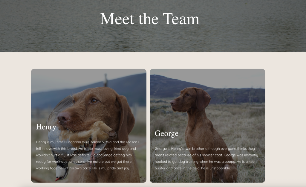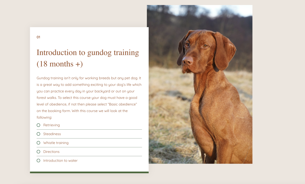 A gundogs training website for Sam who has recently started his own business and is doing a fantastic job of growing it!